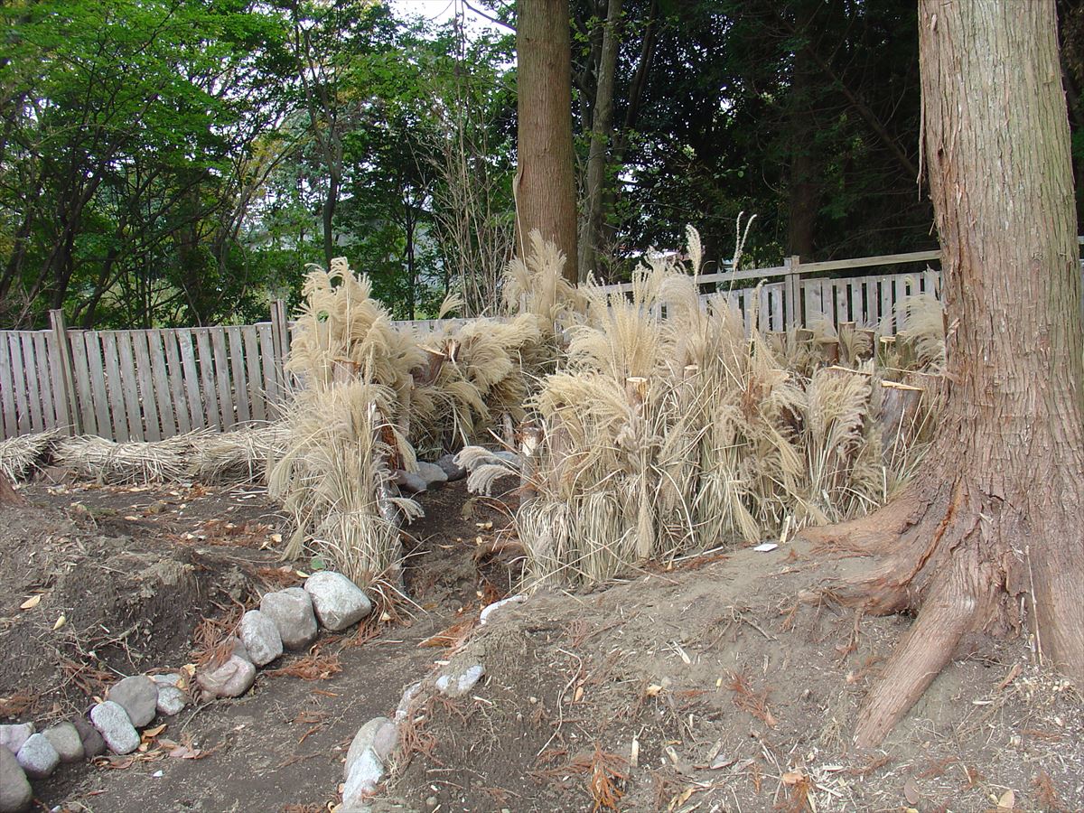 そんな折、気候変動によるものか、むき出しの自然が突然に荒れ狂った。7/11、阿蘇を襲った集中豪雨による山崩れで、大量の木が倒れ、流木となって暴れ狂い、橋桁、ガードレールを壊し、道路の舗装をめくり上げ、死者が出る惨事になった。懸命な復旧作業が続けられる中、暴れ狂った倒木、流木の猛威を撮った一枚の報道写真が、私と自然との赤裸々な向き合いを促した。その一枚の写真は、一地域の出来事として被害者意識を煽るのではなく、地球全体の呻きのような動きの、むき出しの先端を見ろ、と訴えかけてるように思えた。よし、あの無惨な倒木の山から、地球のためのレクエイム、鎮魂歌を。倒木を1メートル単位に切断し、茅を巻いて、縄で締めて、自然の中の安息枕にする。それらを林の中に敷き詰めて、100人分の安息枕の、長い列を作りたい。これは、林を切り開いて、子供達の遊び場にしたいという、阿蘇フォークスクールの狙いとも合致した。